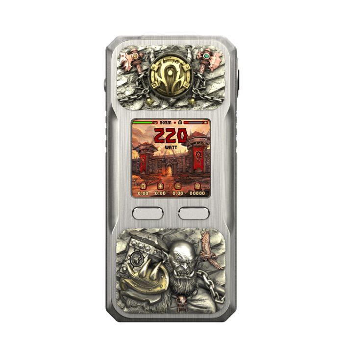Découvrez la Box Rayden 220 Orgrim Limited Edition de BD Vape, une création exclusive alliant performance et esthétique raffinée. Construite en acier avec finition artisanale, elle intègre le chipset XT ULTRA 220 capable de délivrer jusqu'à 220 W de puissance avec une large gamme de modes de fonctionnement. Son écran TFT couleur 1.4 pouces offre une personnalisation complète de l'interface. Compatible avec deux accumulateurs 18650, elle accepte tous les clearomiseurs dotés d'une connexion 510 standard. Son diamètre de 26 mm garantit une excellente stabilité et une ergonomie optimale pour les utilisateurs exigeants.